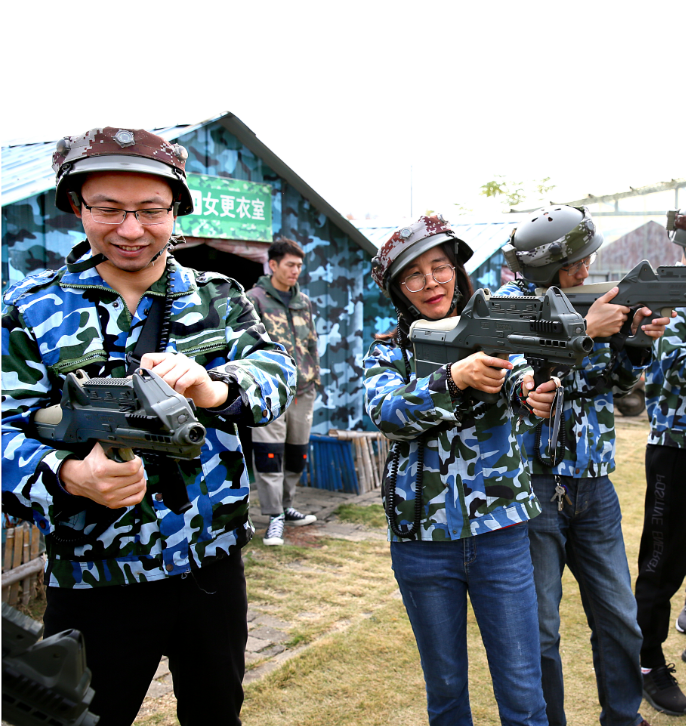 团建活动第二站是进行户外拓展训练。现场分红蓝两个小组进行真人CS对战。两组精心布置各自战术,各展所长,或冲锋,或隐蔽,或腾跃,或迂回,在四个回合的对战中感受团队凝聚的力量,领会团队协作的魅力。