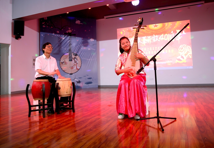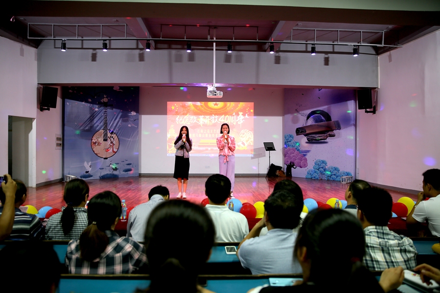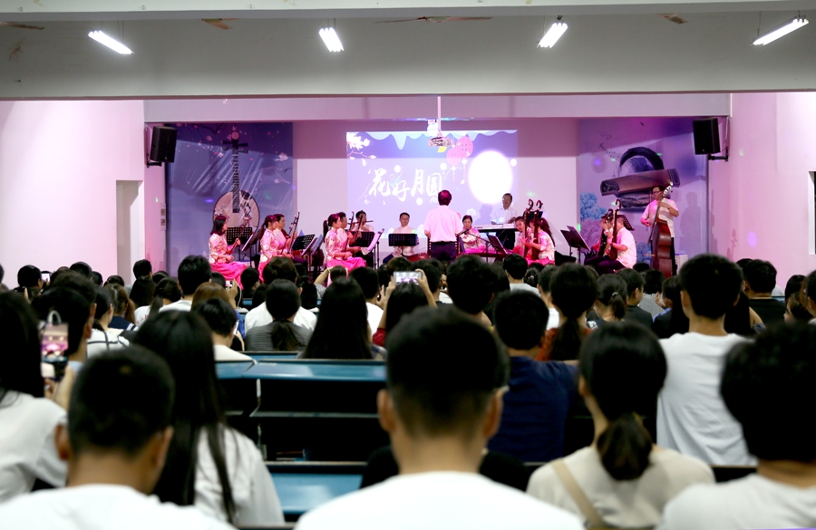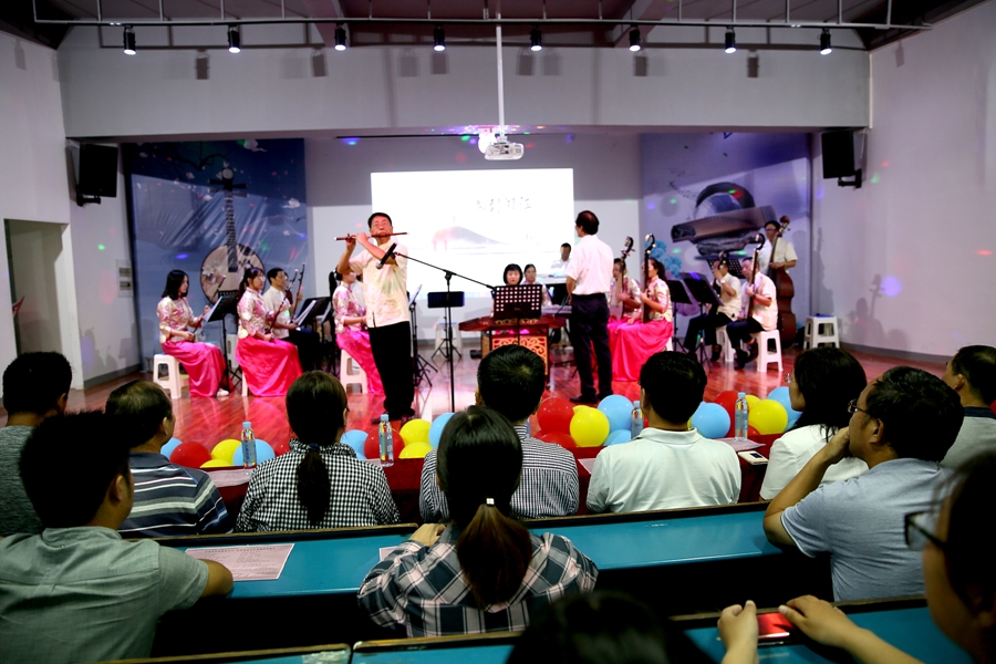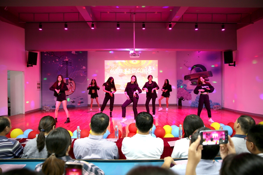 文艺汇演在歌曲《中国梦》中拉开帷幕,经贸系教师李晶晶演唱高亢动听、余音绕梁,讴歌了改革开放40年来祖国的翻天覆地变化和追逐中国梦的激越豪情。整场演出由歌曲、民乐、舞蹈9个节目组成,精彩纷呈、雅俗共赏。参与演出的市总工会职工民乐团是一支有很高艺术造诣、热爱民乐文化的志愿者队伍,他们的乐器合奏《花好月圆》和《拔根芦柴花》表现了团圆美好的喜庆和江南水乡劳动人民的欢乐生活;笛子独奏《春到湘江》、古筝《雪山春晓》、二胡《赛马》、琵琶《送我一枝玫瑰花》,让观众领略到民乐之悦耳、高雅,令观众回味无穷。参与演出的我院学生音乐社团表演的女生二重唱《当你》、舞蹈社团表演的街舞《Black dress》《舞来舞去》展现了我院青年大学生的蓬勃朝气,博得了现场观众的阵阵喝彩。