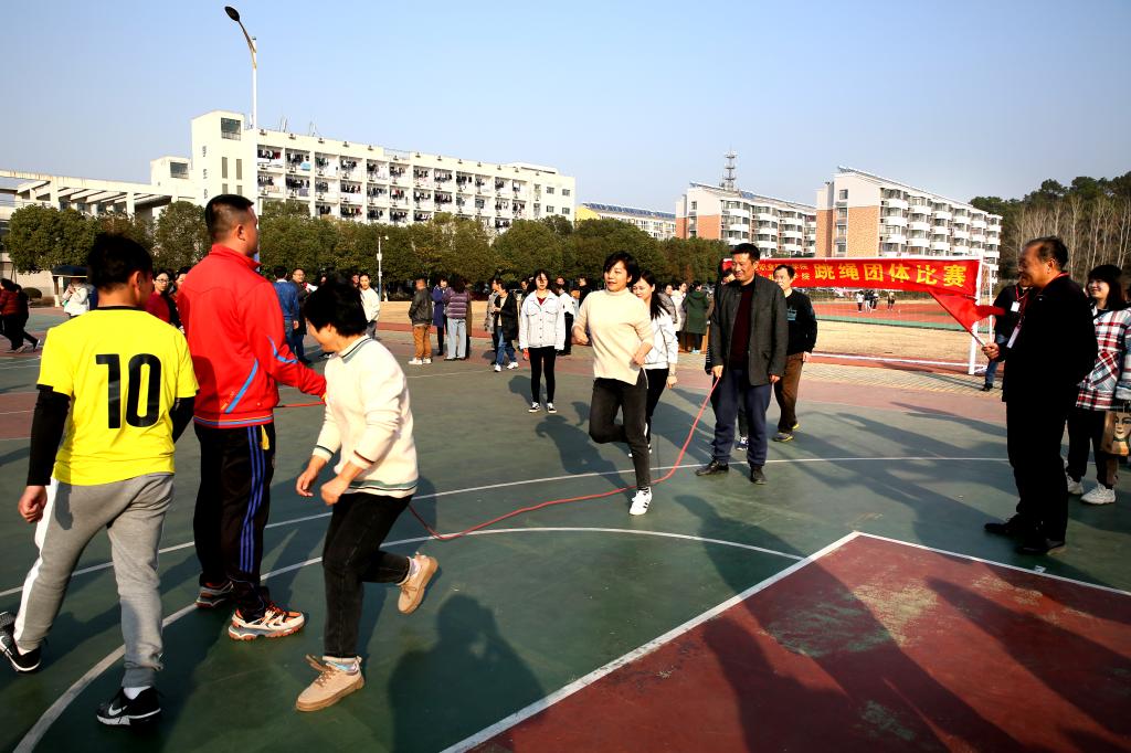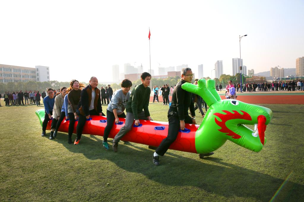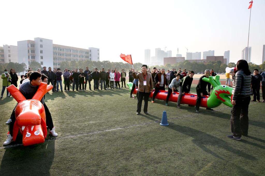 周末的南区足球场和篮球场,一片欢快热闹景象。比赛未开始,参赛教职工已全部就位,有的队在抓紧开展赛前热身,有的队在队员安排上绞尽脑汁,有的队在团队配合上再扣细节。比赛号令一发出,男教师凭借更大力量在龙舟比赛中“冲锋陷阵”带动,女教师拥有更好技巧在跳绳比赛中“轻盈跳跃”引领,各队均使出浑身解数,配合默契、动作整齐、兼顾速度,比赛获得在场师生的阵阵掌声。两项比赛分别决出一等奖1名、二等奖2名、三等奖3名。基础部、机械工程系、网教部、应用外语系、管理工程系、行政三分会分获旱地龙舟比赛一、二、三等奖;电气工程系、基础部、网教部 、机械工程系、行政二分会、经济贸易系分获跳绳比赛的一、二、三等奖。